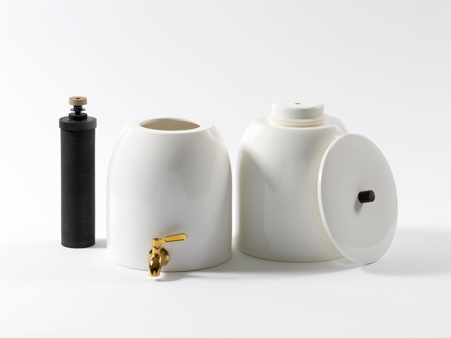 WALTER holds 1 gallon of purified water in the lower chamber of the water filter. Ideal for a household of 2-3 water drinkers